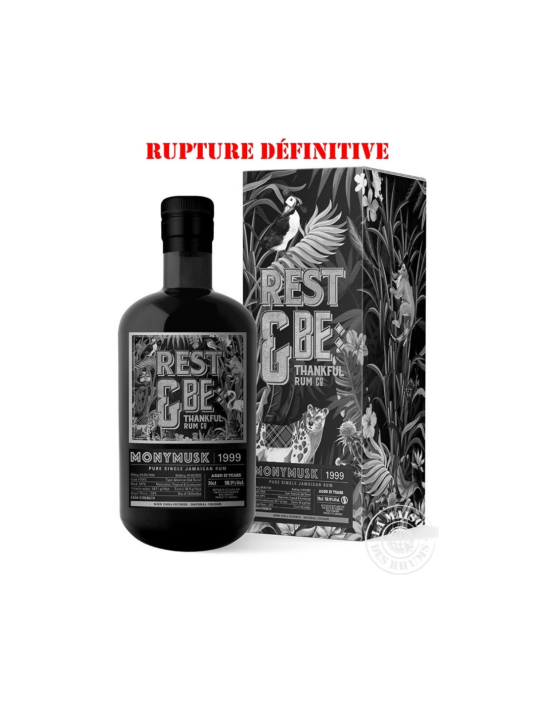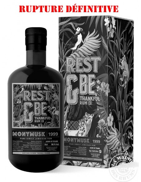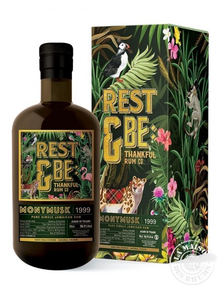 Ce Rhum Rest & Be Thankful Vieux 1999 Monymusk MPG 58.9% est un fût unique de la distillerie Monymusk de mark MPG. Vieilli en ex-fûts de Bourbon pendant 22 ans, il affiche un taux d'esters de 99.9 g/hlap et un degré naturel de 58.9%. Une superbe démonstration d'un grand Rhum Jamaïcain !