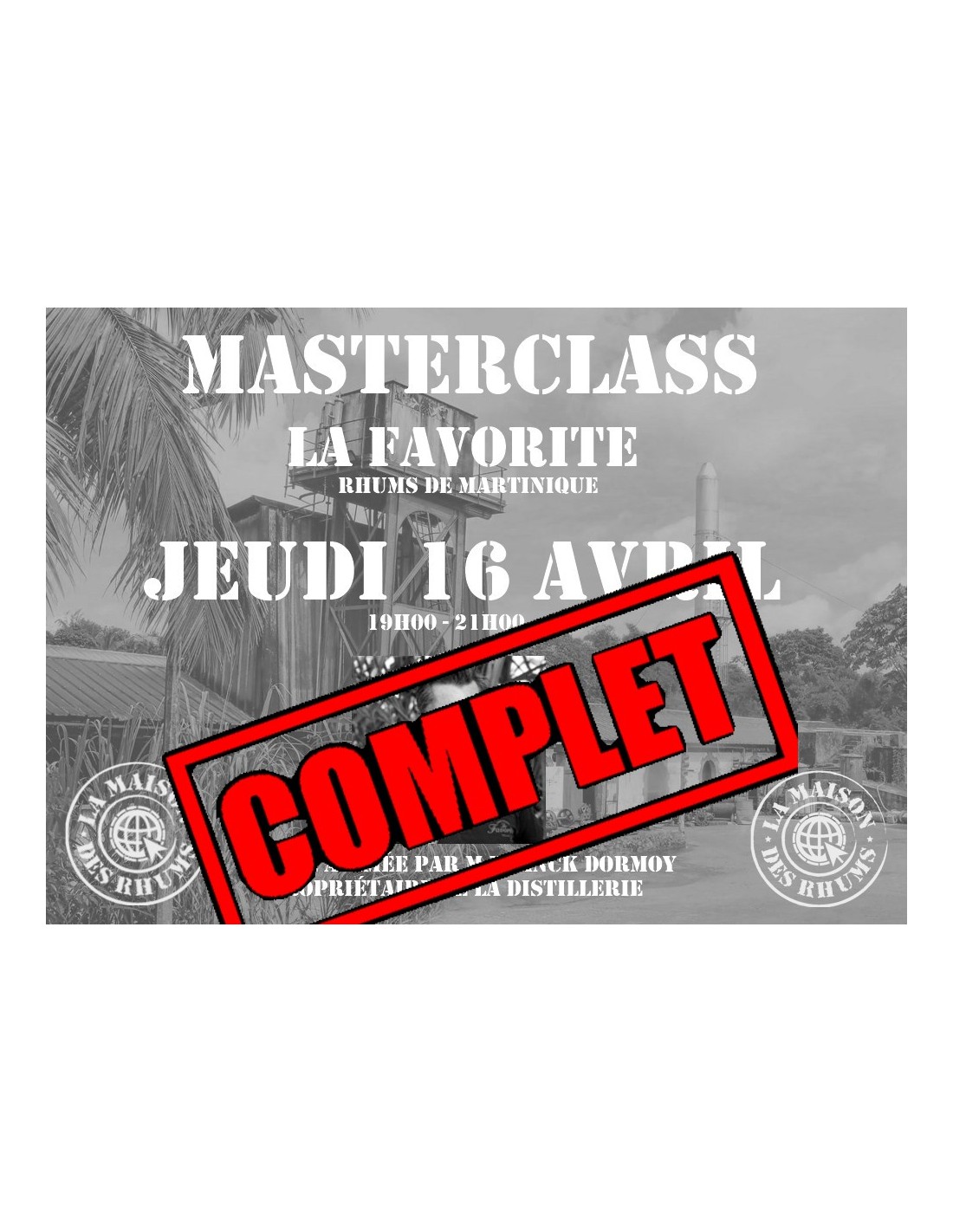 La Maison Des Rhums est heureuse de vous inviter à sa Masterclass Rhum LA FAVORITE (Martinique)