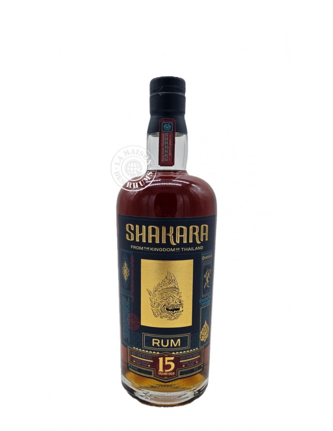 Le Rhum Shakara Vieux 15 ans 46.2% tire son nom du Sanskrit "shakar", le sucre. Un nom tout naturel, qui fait référence aux racines géographiques de la canne à sucre. Distillé en colonne à partir de mélasse thaïlandaise, il a vieilli pendant 15 années en ex-fûts de Bourbon sous le climat tropical de Thaïlande avant d'être embouteillé sans additif à 46,2%.