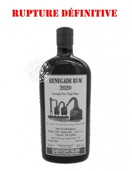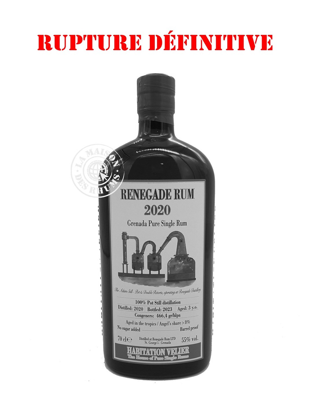 Le Rhum Habitation Velier Vieux Renegade Millésime 2020 55% est un Rhum de pur jus de canne produit par Mark Reynier au sein de sa distillerie Renegade ! Produit à partir de la variété de canne à sucre Lacalome Red, il a été distillé en alambic traditionnel avant de vieillir pendant dans 2 barriques différentes : chêne Français et chêne Américain.