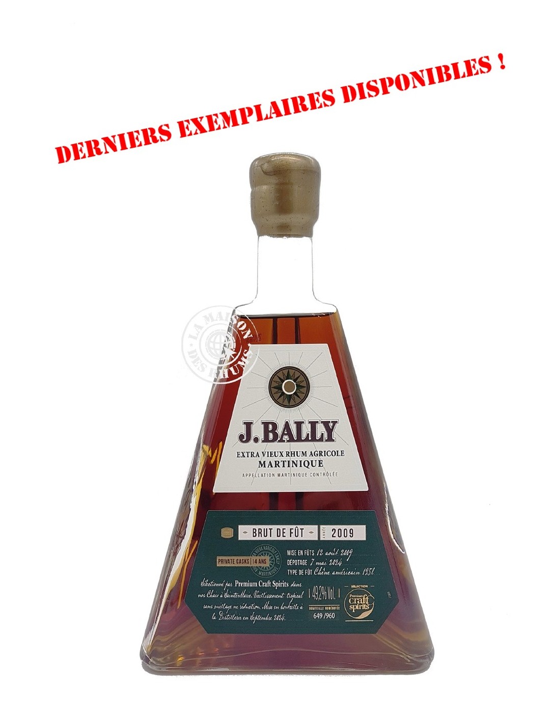 Le Rhum J. Bally Vieux Millésime 2009 Brut de Fût 49.2% est un Rhum Agricole Extra Vieux AOC Martinique. Entonné en fûts de chêne américain le 12 Août 2009, ce Rhum a bénéficié d'un vieillissement tropical jusqu'au 7 Mai 2024 où il a été mis en bouteille brut de fût à 49.2%vol.