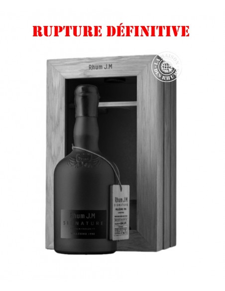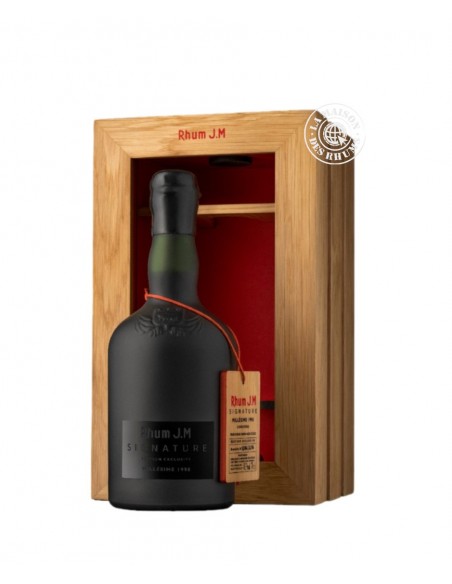 Ce Rhum JM Hors d'âge Signature Millésime 1998 25 ans 40.6% est le troisième embouteillage de la prestigieuse gamme Signature de la distillerie JM ! Ce fût unique de Rhum Agricole Hors d'Âge AOC Martinique a été distillé en 1998. Entonné en fût de chêne américain, ce Rhum exceptionnel a bénéficié d'un vieillissement tropical extrêmement prolongé de 25 ans ! Il a ensuite été embouteillé à son degré naturel de 40.6%vol.