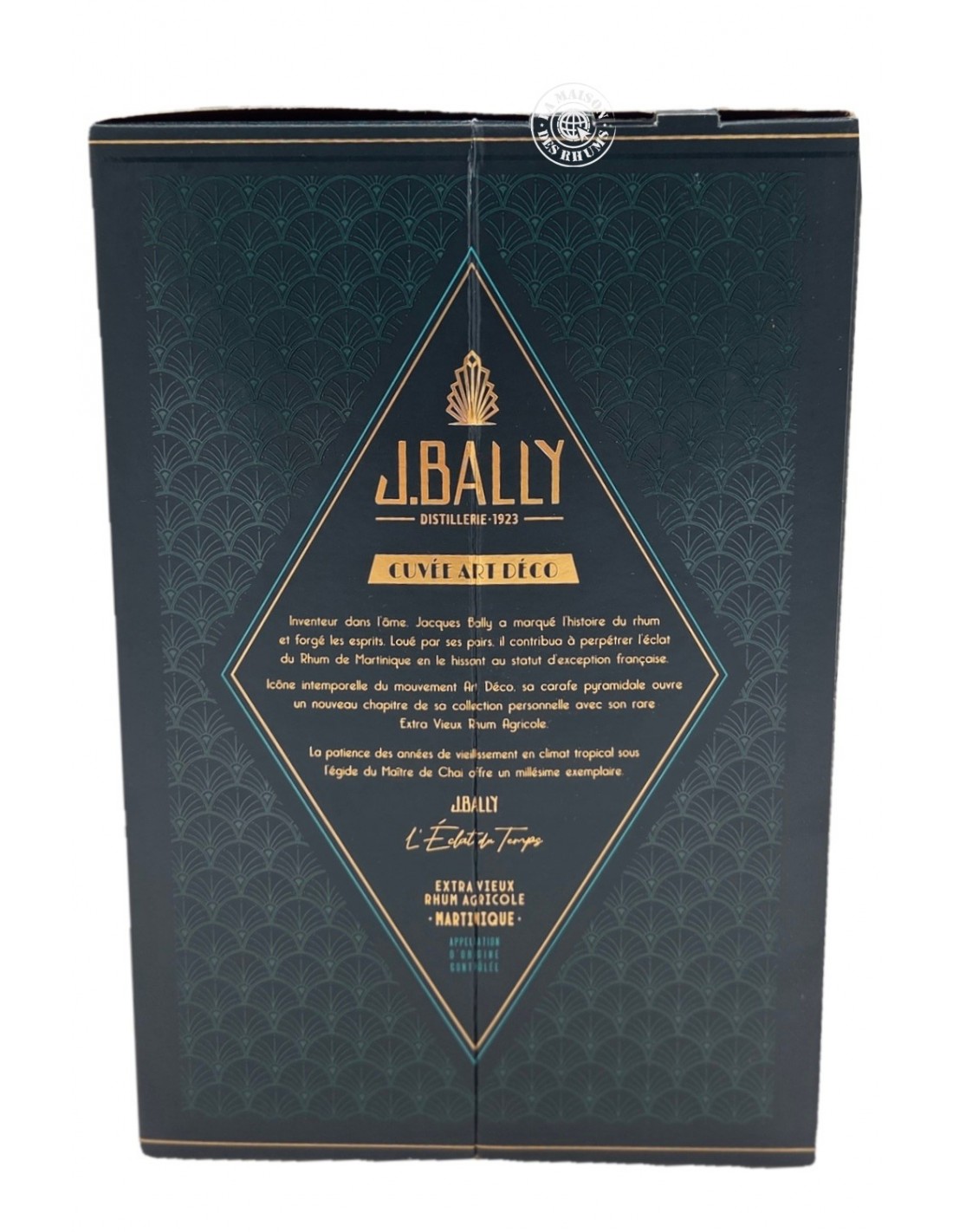 Pour ce Rhum J. Bally Vieux Édition limitée Art déco Batch 3 Millésime 2003 45%, Marc Sassier, œnologue de la maison J. Bally, a sélectionné pour ce troisième opus de la désormais célèbre cuvée Art Déco, un superbe Rhum Vieux issu exclusivement du millésimes 2003.