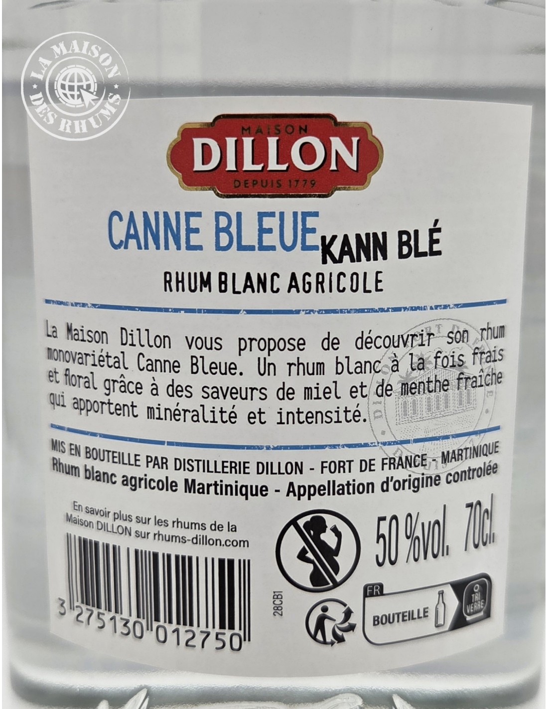 Le Rhum Dillon Blanc Canne Bleue Kann Blé 50% est un Rhum Agricole AOC Martinique. Ce Rhum blanc monovariétal est issu exclusivement de Cannes Bleues (B69.566) cultivées en zone humide, un Rhum blanc cristallin d'une pureté aromatique remarquable.