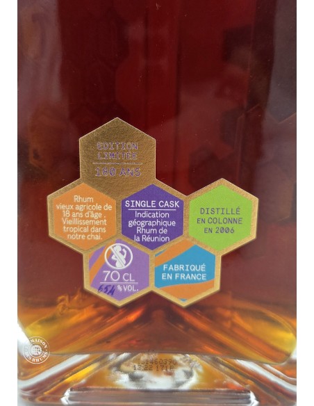 Issu de pur jus de canne à sucre exclusivement du millésime 2006, ce Rhum Isautier Vieux 18 ans 2006 Cuvée anniversaire 180 ans 65.4% a vieilli 18 longues années sous le climat tropical de l'île de la Réunion, puis a été mis en bouteille "brut de fût", à son degré naturel vertigineux de 65.4%Vol sans filtration à froid.