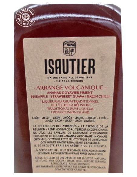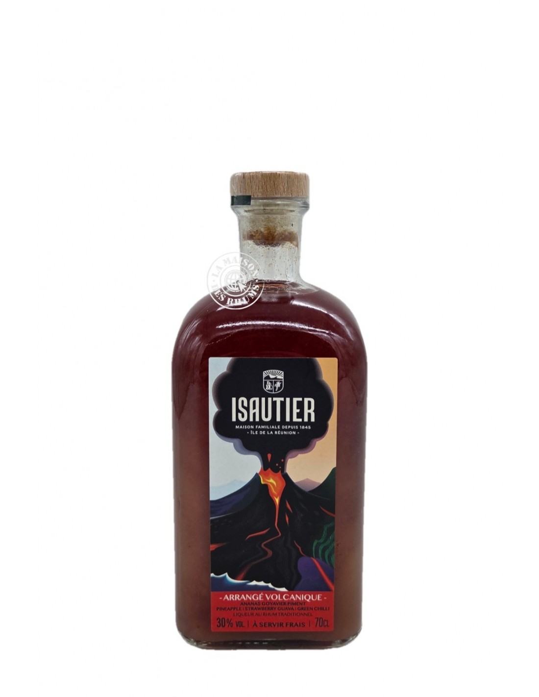 Ce Rhum Isautier Arrangé Volcanique - Ananas Goyavier Piment 30% est un hommage au Piton de la Fournaise sur l'île de la Réunion , l’un des volcans les plus actifs au monde et réputé pour la beauté de ses paysages.