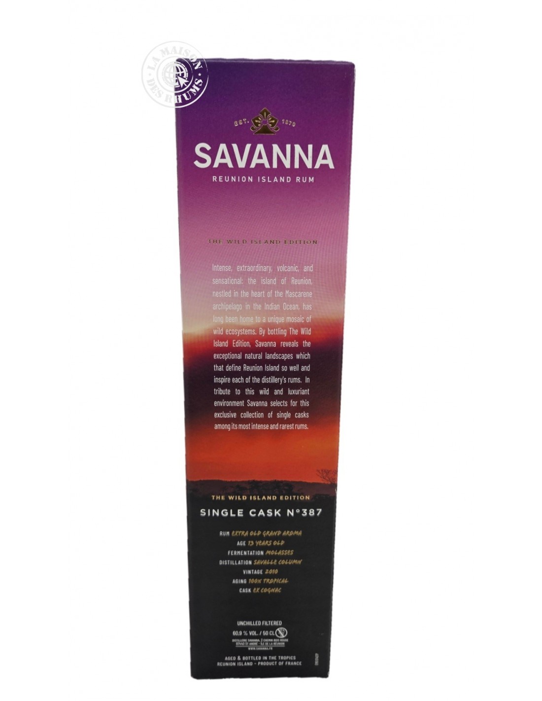 Ce Rhum Savanna Vieux Traditionnel The Wild Island Edition - Grand Arôme 2010 13 ans - Arbre Feu 60.9% 50cl a bénéficié d'un vieillissement tropical intégral sur l'île de la Réunion dans les chais de la distillerie, en ex-fût de Cognac